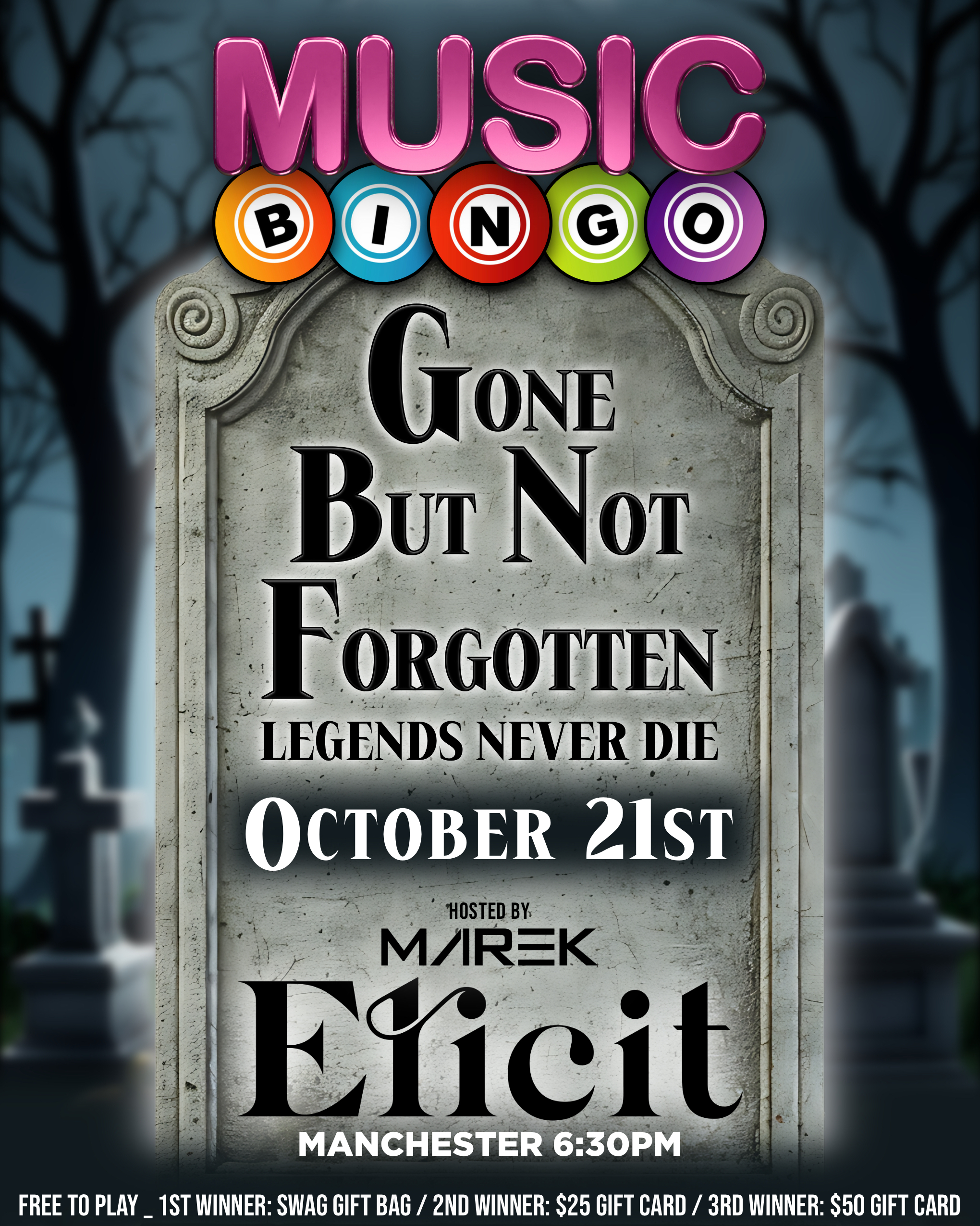 We'll play a portion of the song and if it's on your card, mark it off. We won't tell you the song title or artist - so test your musical knowledge with us! And NO SHAZAAM allowed!