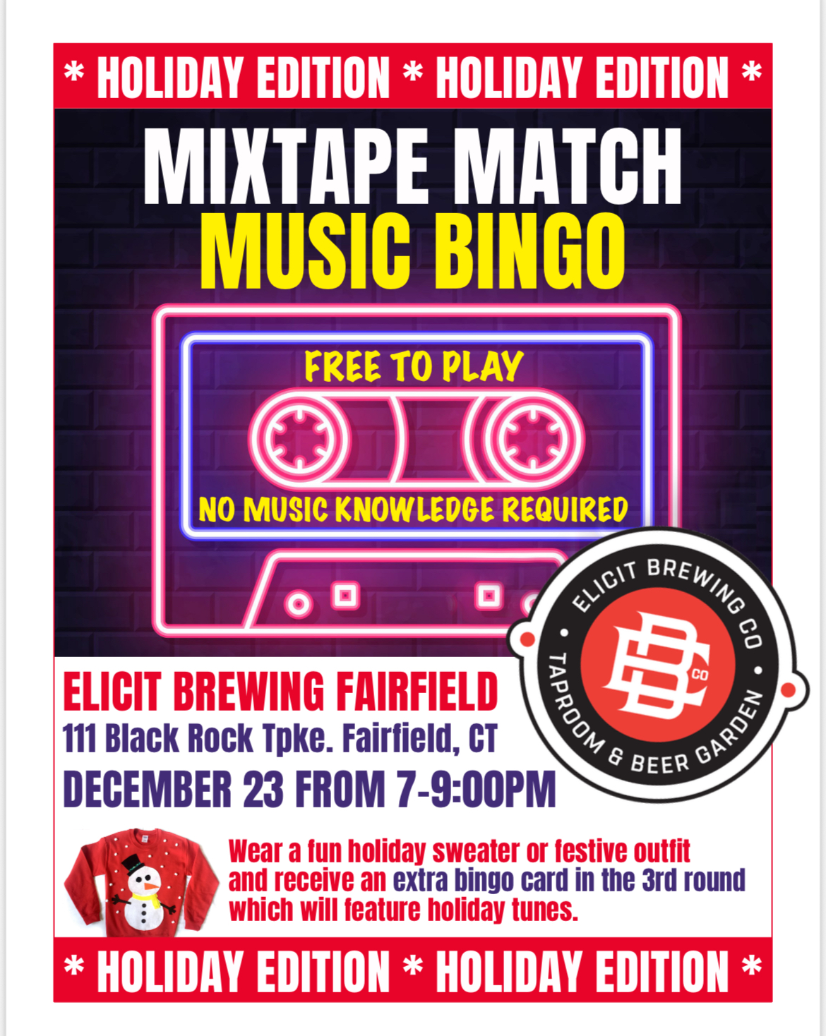 Join us every Tuesday night at Elicit Danbury for Trivia Tuesdays — a fast-paced, laugh-filled battle of brains where teams compete for prizes, bragging rights, and beer-fueled glory.