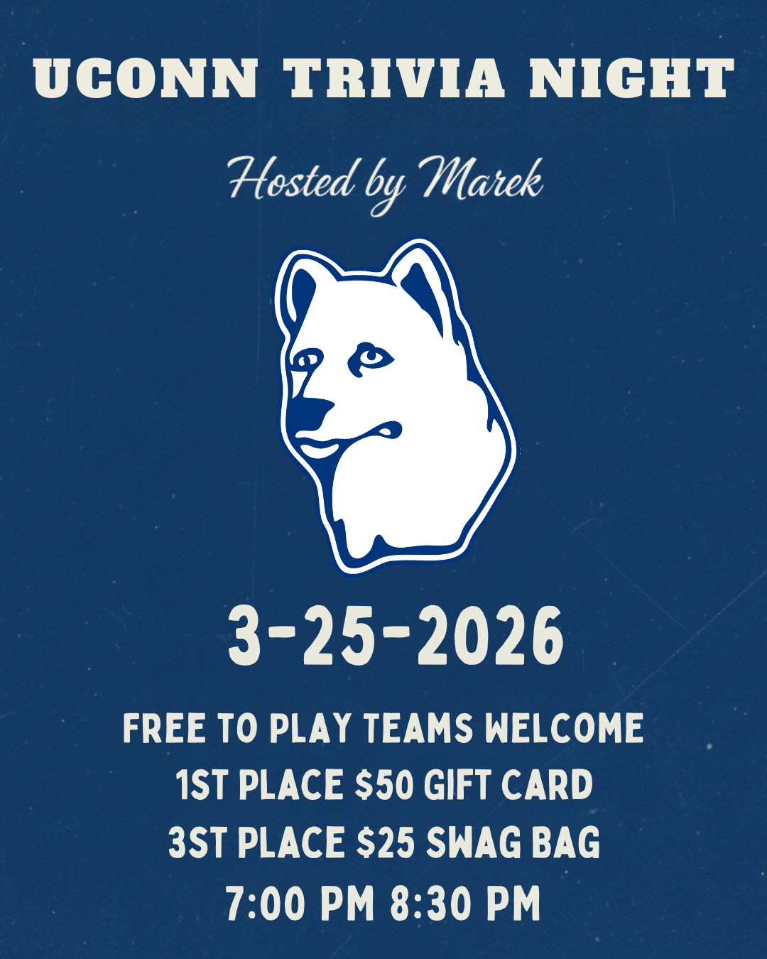 UCONN TRIVIA NIGHT Hosted By DJ Marek 7–8:30PM